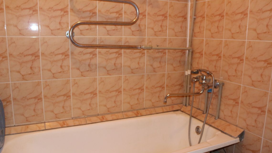 Санузел: ванна, раковина, унитаз, полотенца